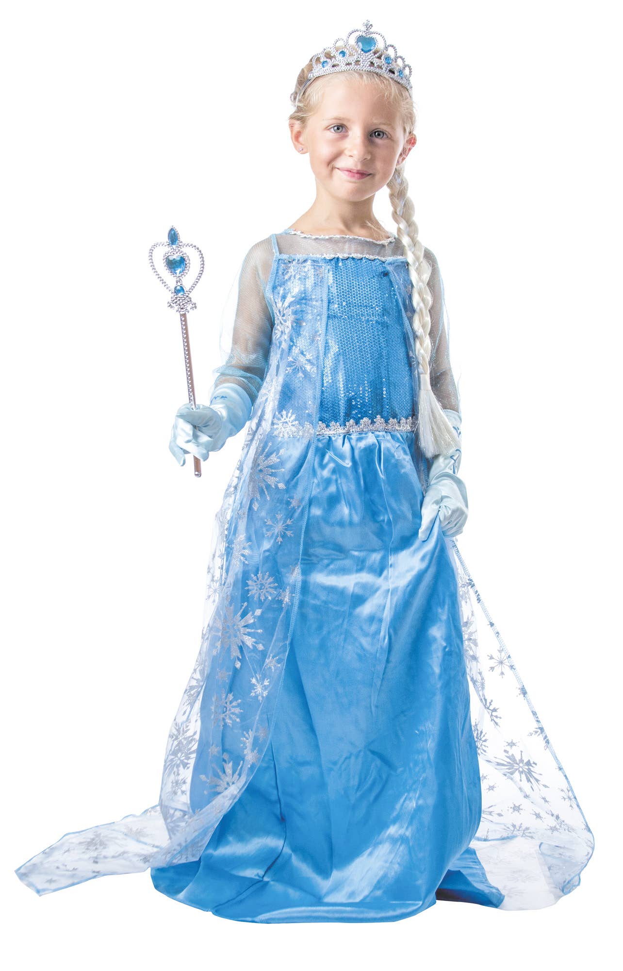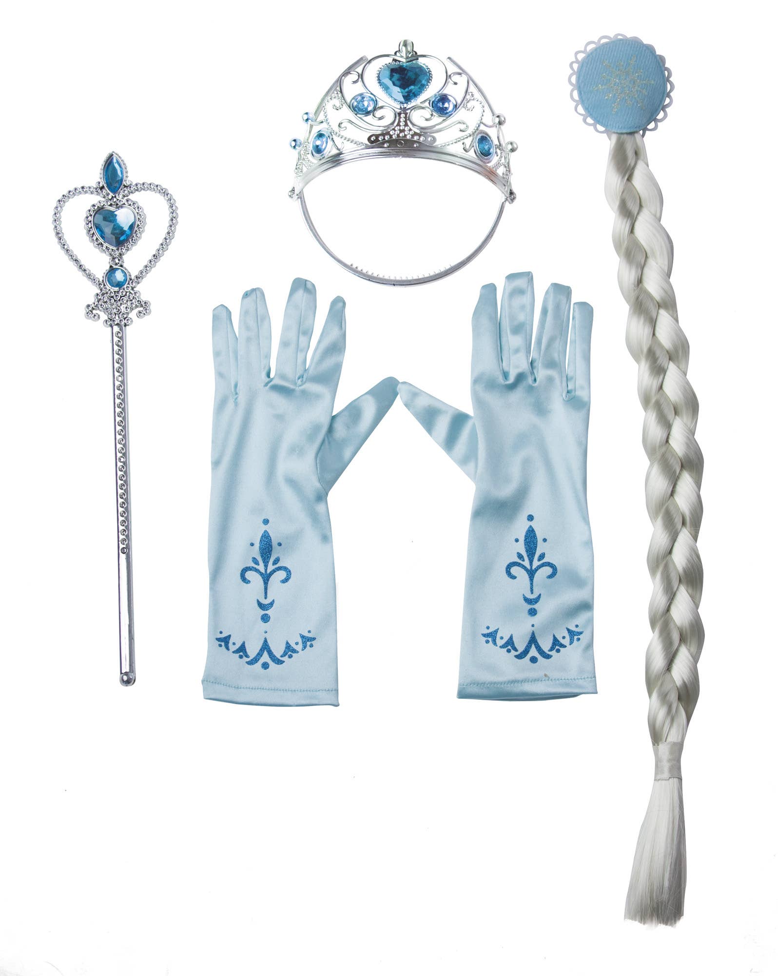 ICE PRINCESS PREMIUM SET 1 SILVER AND BLUE TIARA 1 SILVER AND BLUE WAND 1 PIGTAIL CLIP 1 PAIR OF GLOVES SIZE 7 - 9 YEARS