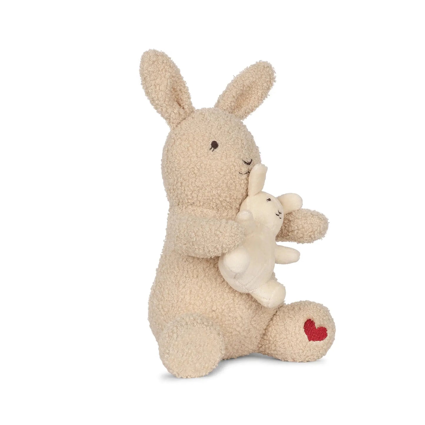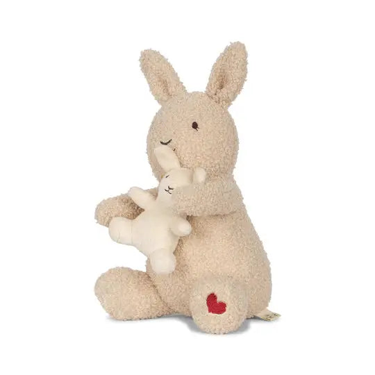 Bunny mom with pull baby bunny on the stomach.