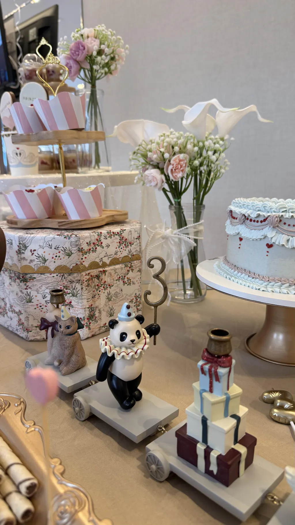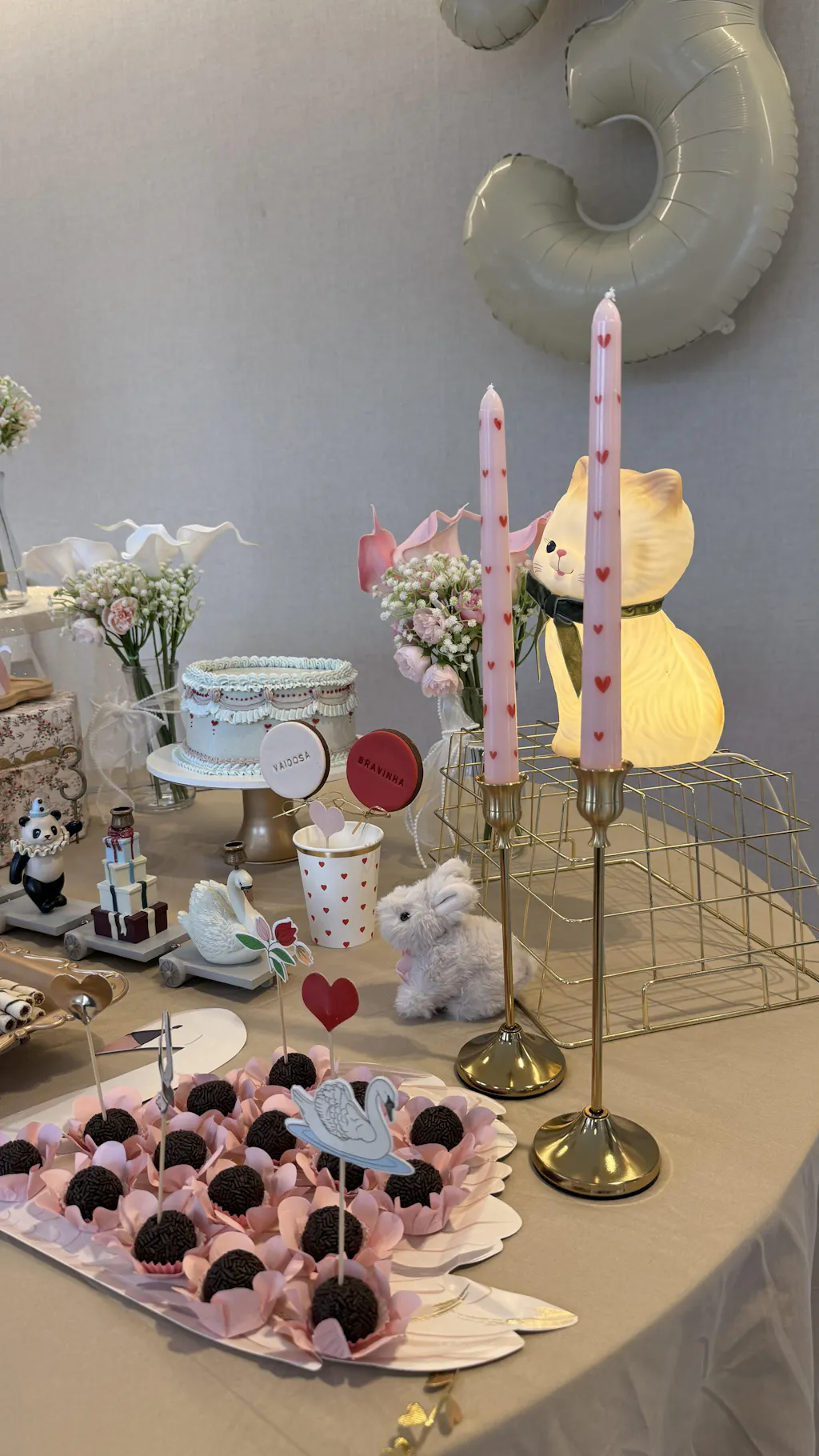 Materiels: Cups: Paper, Plates: Paper,Napkins: paper, Garland: paper, cotton string , Balloon: Aluminum foil, Cake toppers: paper, bamboo stick