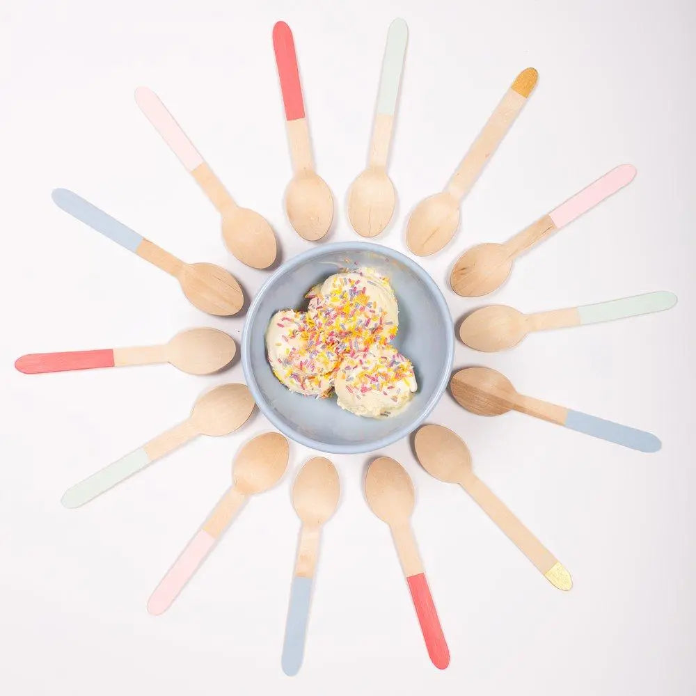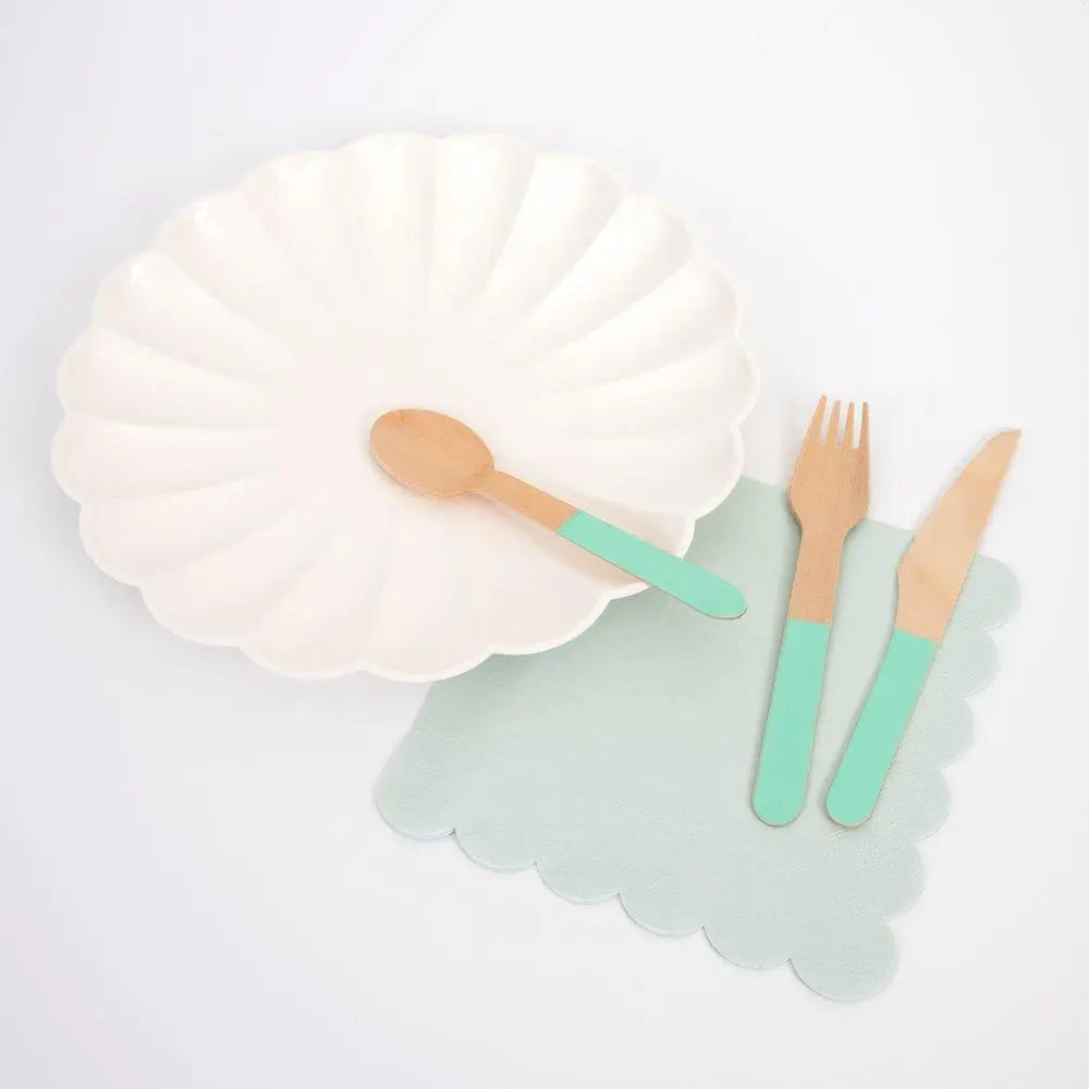 Whether you're planning a picnic or a party, inviting big folks or small, you can't go wrong with our wooden cutlery sets - these high-quality knives, forks, and spoons are crafted in pale birch wood and decorated with mint green painted handles.