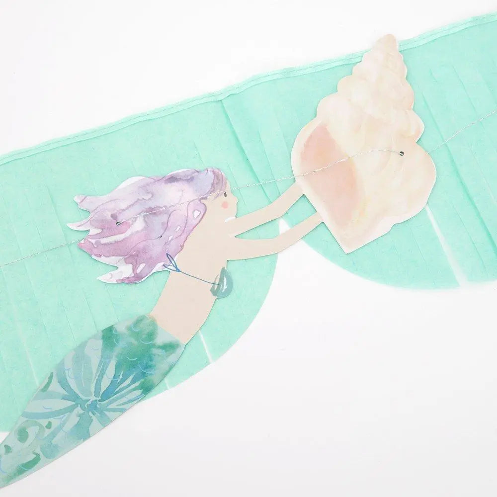 Haz que una fiesta de sirenas o bajo el mar luzca increíble con estas hermosas guirnaldas de papel de seda con flecos. Presentan hermosas sirenas y caballitos de mar, con detalles de papel metalizado azul y rosa brillante.