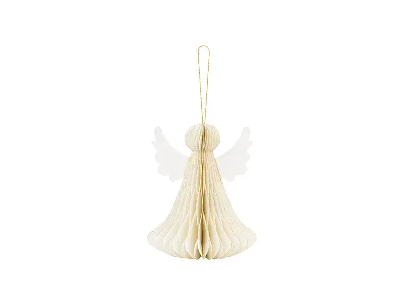 Décoration en papier Ange nid d'abeille de couleur ivoire, hauteur env. 15 cm.
