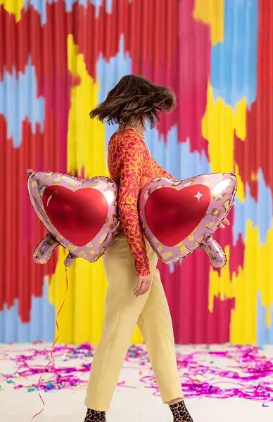 Foil balloon Heart glasses, assorted colors, dimensions: dimensions before inflation approx. x cm (x''), height after inflation approx. x cm (x''). To be inflated with helium and air. The set includes a straw.