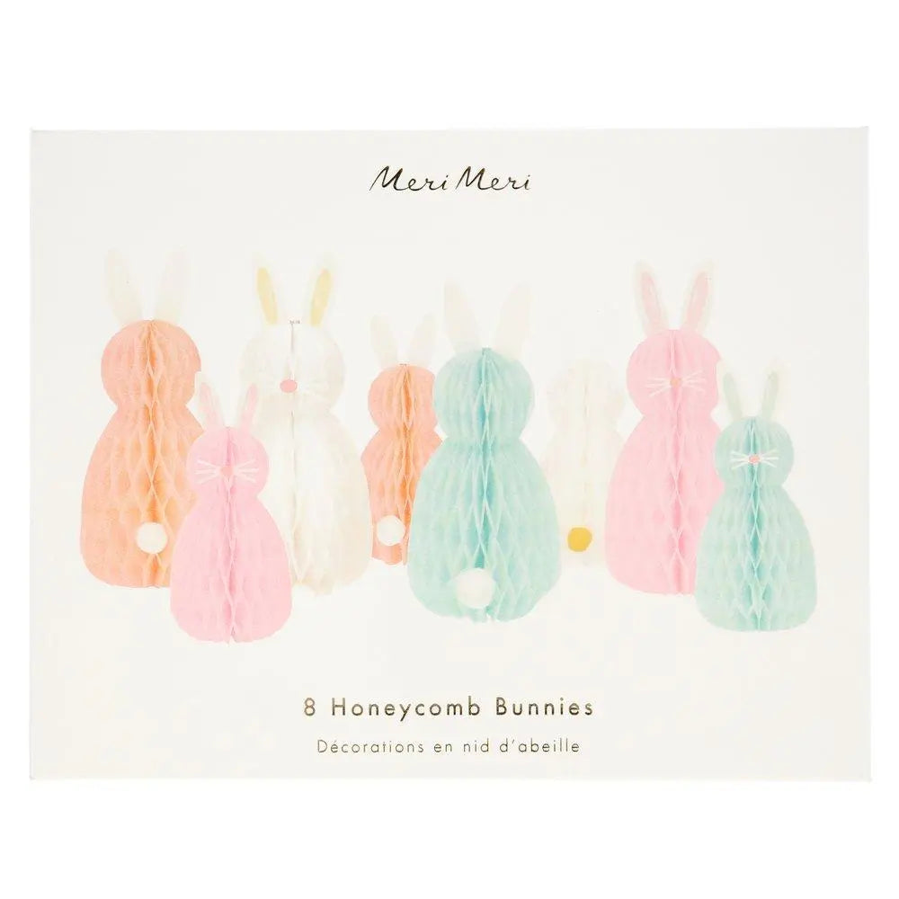 These adorable honeycomb bunnies make fabulous decorations for your Easter or springtime party. The set includes 4 large bunnies and 4 smaller bunnies, in soft pastel colours.