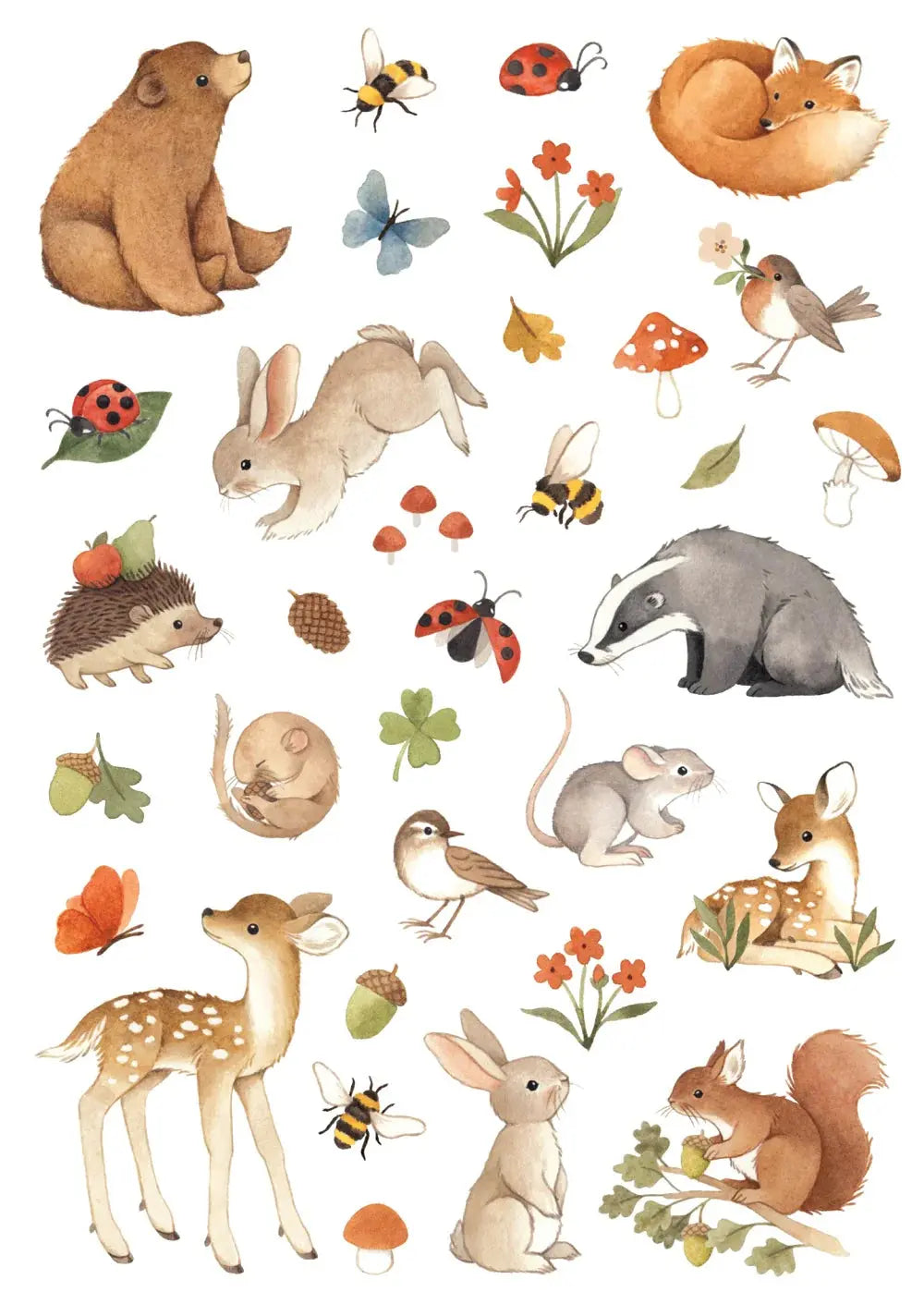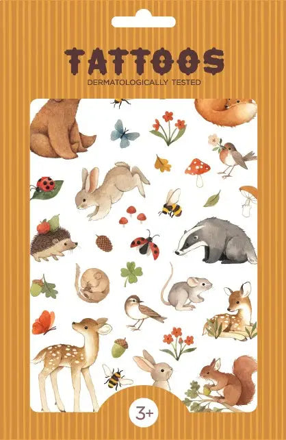 Fine Petit Monkey tattoos of various animal and plants from the forest in delicious, earthy colours. The tattoos consist of two identical sheets with 33 tattoos on each sheet.