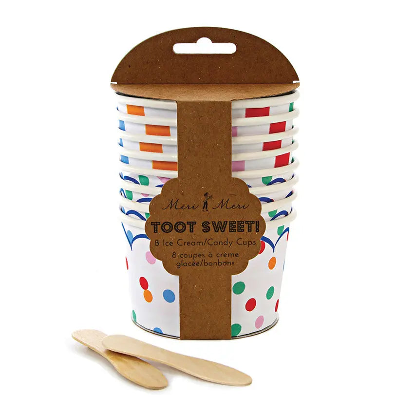 Pack contains 8 cups in 2 designs and 8 wooden spoons